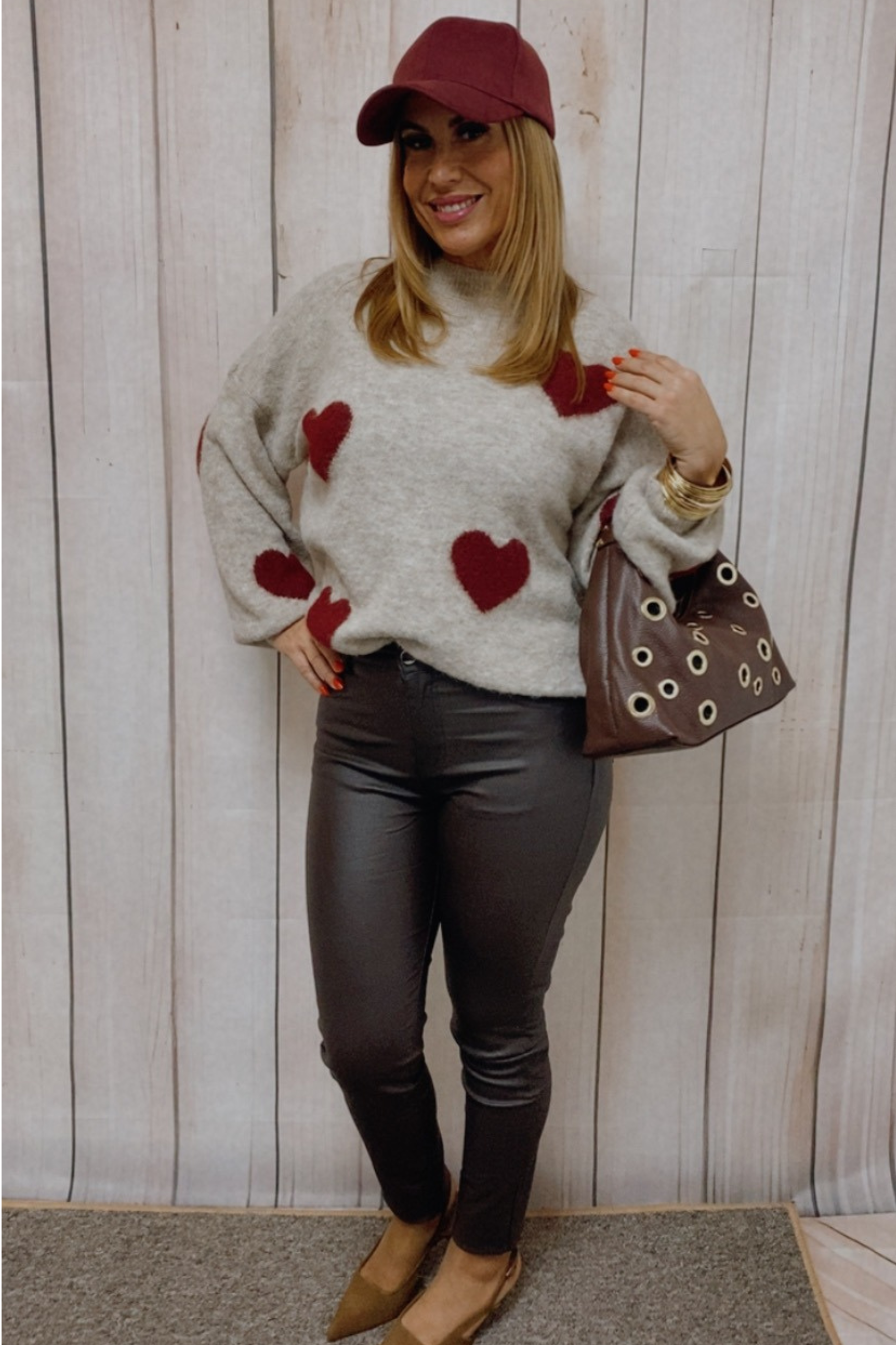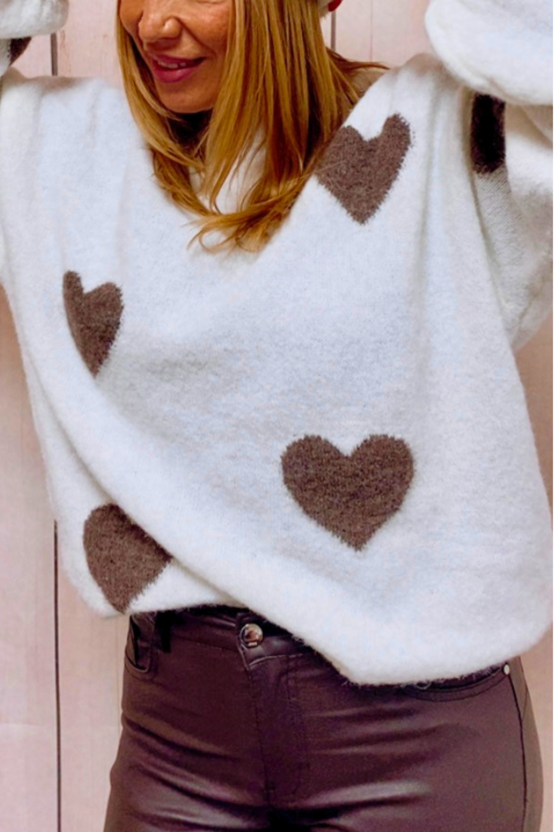 El Jersey Latidos es la prenda perfecta para agregar un toque de ternura y confort a tu armario. Confeccionado en un suave material que brinda calidez, este jersey de abrigo presenta un diseño encantador de corazones, disponibles en dos tonos: blanco con corazones marrones y beig con corazones burdeos. Su corte amplio y cómodo se adapta a tallas únicas, abarcando desde la 34 hasta la 42, garantizando un ajuste relajado y estiloso. Ideal para días frescos, su estilo romántico y moderno lo convierte en una opción versátil para cualquier ocasión. ¡Deja que tu look lata con Latidos!